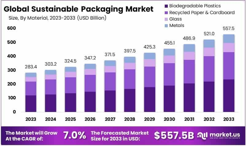 The global market for sustainable packaging has expanded significantly over the past decade. Analysts estimate that the sector will grow from about USD 347.2 billion in 2026 to more than USD 486 billion by 2031, reflecting strong demand from consumer goods, food, and e-commerce industries.